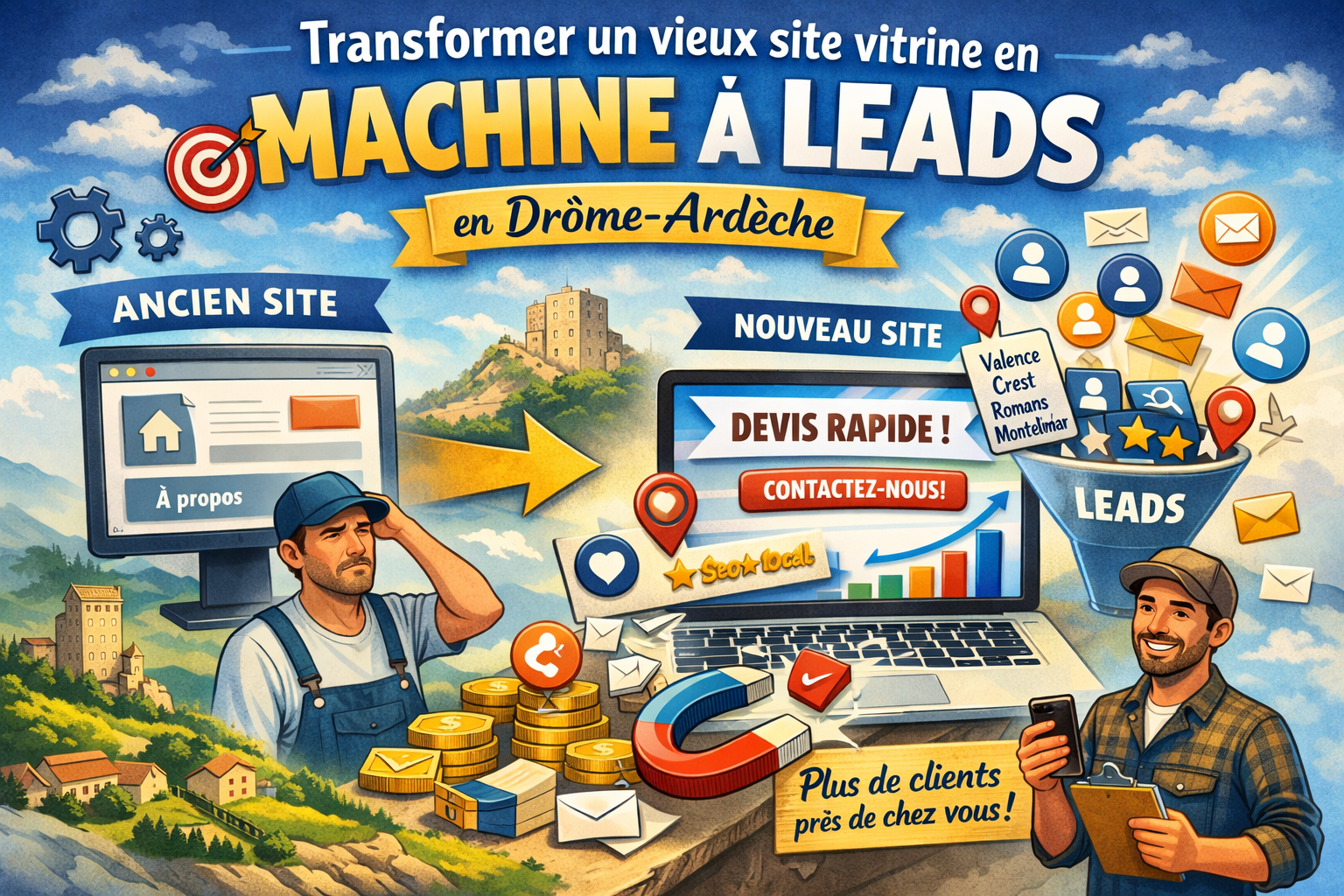 De nombreux artisans et petites entreprises en Drôme-Ardèche possèdent encore un ancien site vitrine créé il y a plusieurs années. Que l’on soit plombier à Valence, électricien à Crest, commerçant à Romans-sur-Isère ou entrepreneur à Montélimar, le constat est souvent le même : le site existe, mais il ne génère presque aucun contact.
